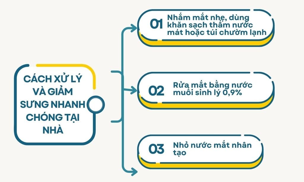 Khi vừa dụi mắt bị sưng tròng trắng, bạn nên dừng ngay động tác dụi để tránh làm tổn thương thêm bề mặt nhãn cầu và làm phù kết mạc nặng hơn. Để hỗ trợ giảm khó chịu bạn có thể: