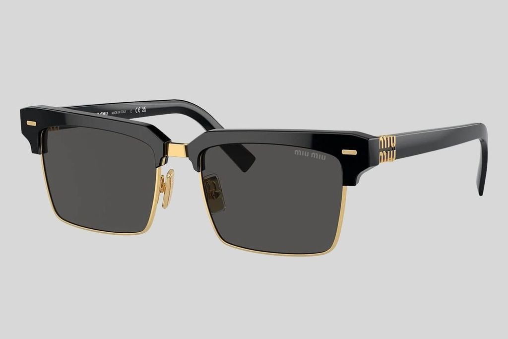 Kính râm Miu Miu ở nhóm thiết kế “Thanh lịch táo bạo” ghi điểm nhờ sự trau chuốt trong từng đường nét. Gọng kính thanh mảnh nhưng chắc chắn, phối màu tinh tế, kết hợp cùng những biểu tượng đặc trưng của Miu Miu được làm mới theo cách riêng. Thiết kế này dành cho những quý cô theo đuổi vẻ đẹp cổ điển pha lẫn sự cá tính, muốn nổi bật nhưng không cần ồn ào.
