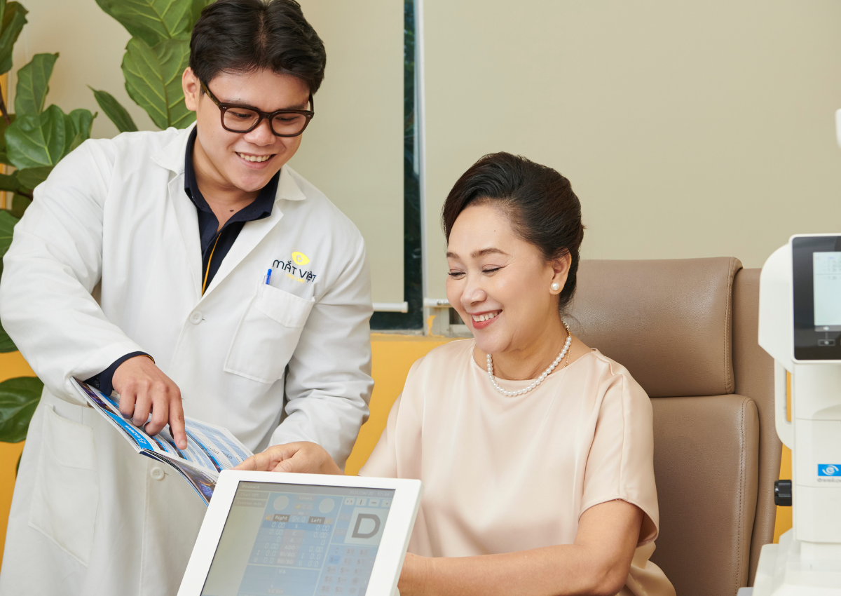 Mắt Việt tự hào là doanh nghiệp đi đầu tại Việt Nam sở hữu quy trình đo mắt 12 bước được phát triển bởi Học viện quốc tế về khúc xạ & thị lực Essilor IVA, đảm bảo kết quả khám mắt chính xác, mang đến giảm pháp thị lực tối ưu nhất cho khách hàng.