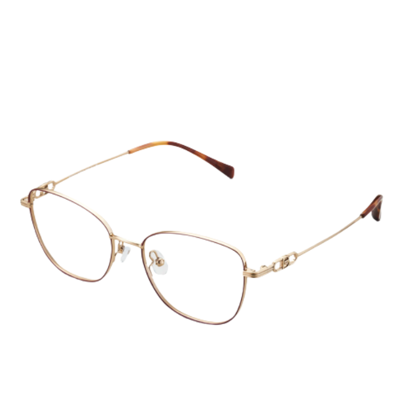 KHUNG KÍNH HÌNH DẠNG GỌNG: Mắt mèo CHẤT LIỆU GỌNG: Kim loại MÀU GỌNG: Vàng gold & Nâu |
