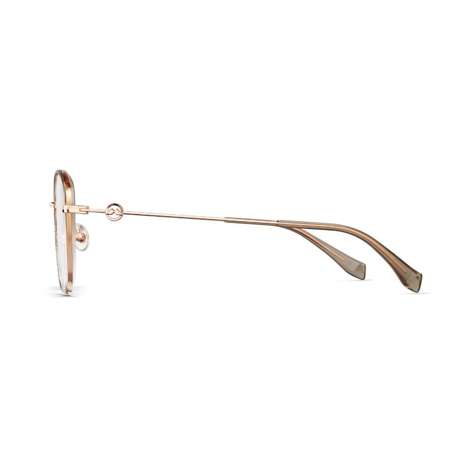 KHUNG KÍNH HÌNH DẠNG GỌNG: Mắt mèo MÀU GỌNG: Vàng Hồng Viền Nhựa Nâu Vàng Trong Suốt CHẤT LIỆU GỌNG: TR/Titanium |