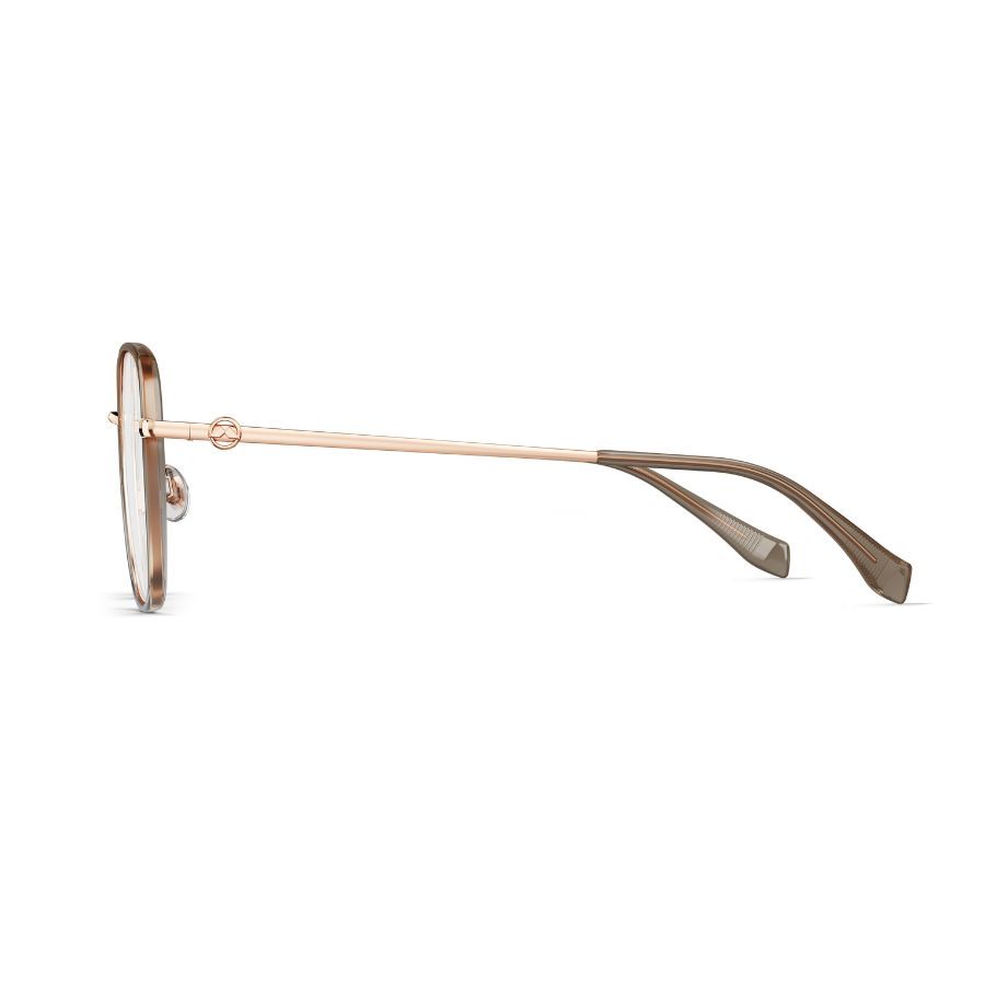 KHUNG KÍNH HÌNH DẠNG GỌNG: Phi hình học MÀU GỌNG: Vàng Hồng Viền Nhựa Nâu Trong Suốt CHẤT LIỆU GỌNG: TR/Titanium |