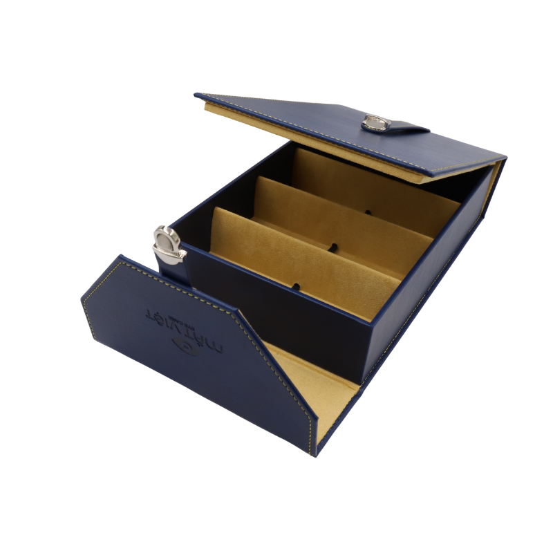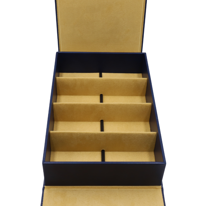 HỘP ĐỰNG KÍNH MẮT VIỆT HK4 B1050 thiết kế của hộp là kiểu gập mở thông minh, một lựa chọn tối ưu cho những người thường xuyên di chuyển. Khi đóng lại, hộp nhỏ gọn và được giữ chặt bằng khóa cài kim loại cao cấp, đảm bảo kính của bạn luôn an toàn. Khi mở ra, để lộ 4 ngăn lưu trữ riêng biệt được sắp xếp gọn gàng. Ôm sát và che chắn toàn bộ tròng kính và gọng kính khỏi mọi nguy cơ trầy xước hay va chạm. Các vách ngăn cứng cáp đảm bảo mỗi chiếc kính có một không gian riêng, ngăn chặn hoàn toàn việc chúng cọ xát vào nhau – một vấn đề thường gặp khi lưu trữ nhiều chiếc kính cùng lúc.